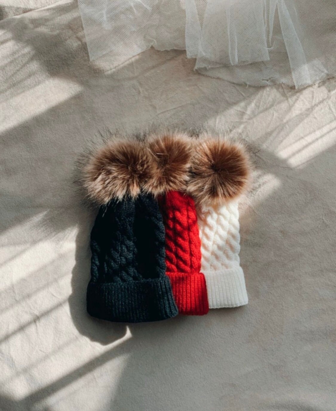 🧶 Baby Cable Knit Hat | Unisex Beanie with Faux Fur Pom | Handmade Winter Hat | Made in Europe