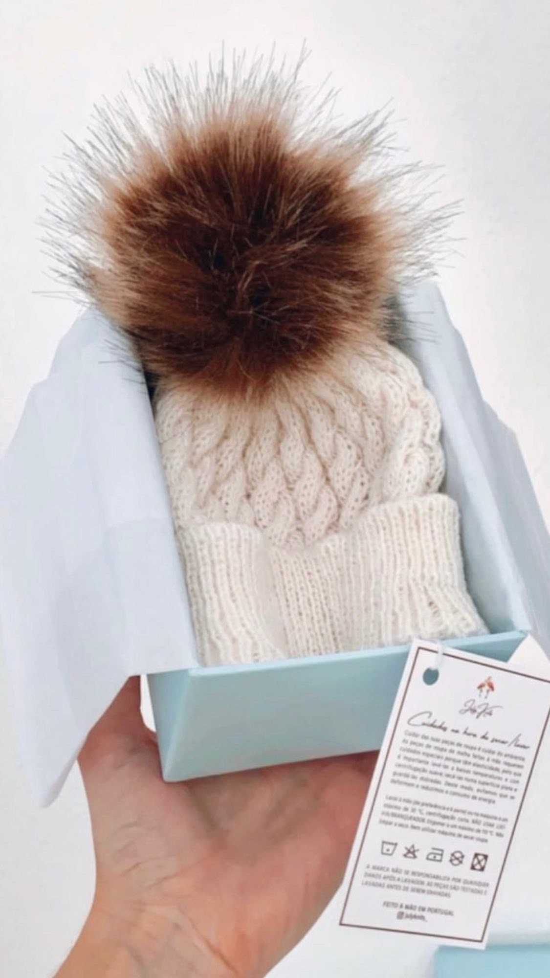 Unisex model, ideal for both girls and boys, with a faux fur pompom and a classic braid pattern that never goes out of style.