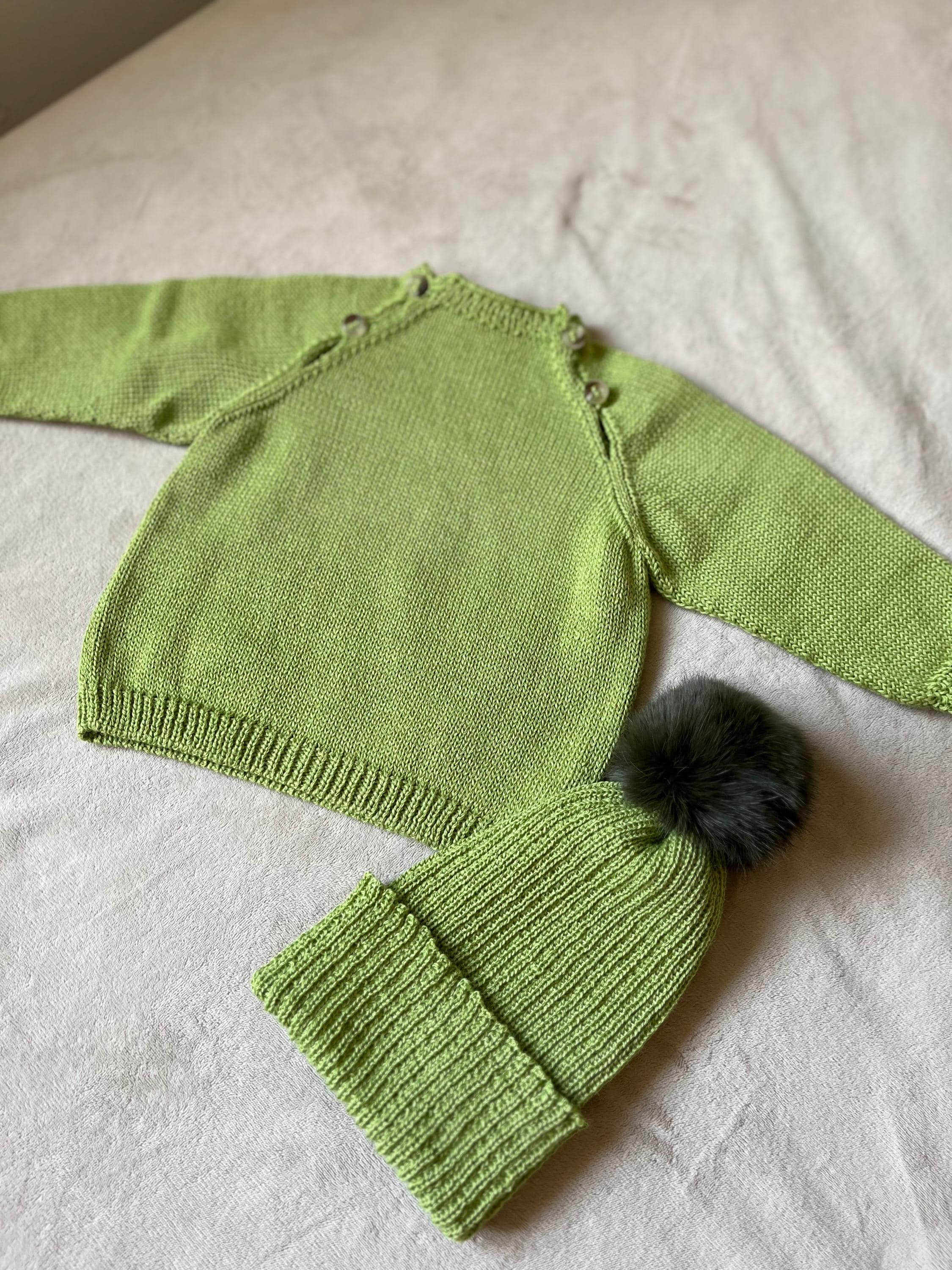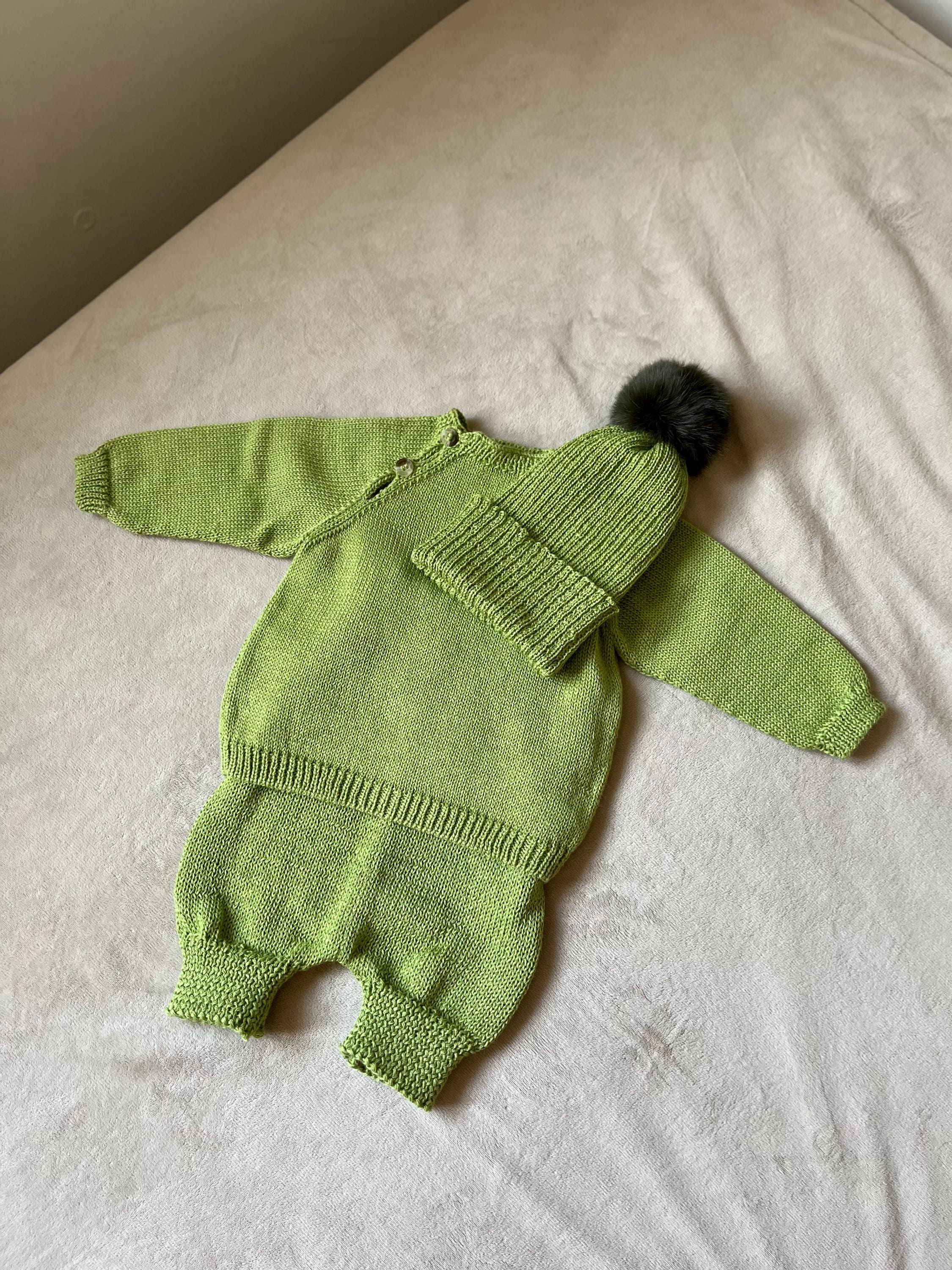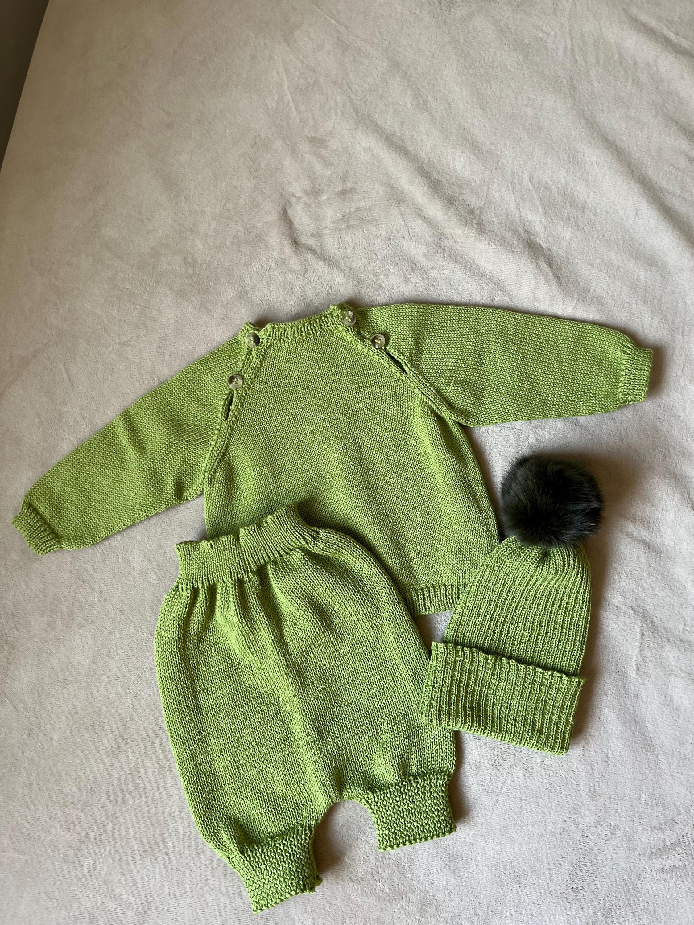 Wrap your little one in softness with our Baby Knit Set “Lettuce”, a delicate 3-piece handmade outfit available in size 3–6 months.